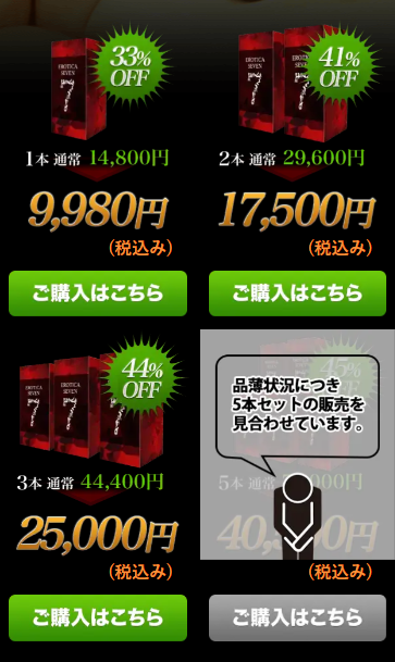 エロティカセブンは定価14,800円と非常に高価であるため購入できる人が限られていました。