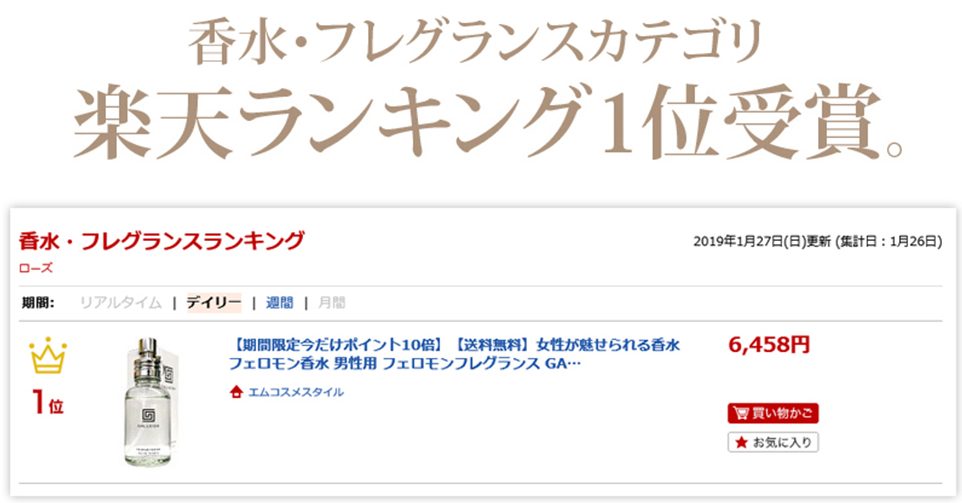 上記にもある通りフェロモン効果はありませんが、単純に「いい匂いの香水」としてめちゃくちゃ売れてます。実際、女性からの評判もいいです。