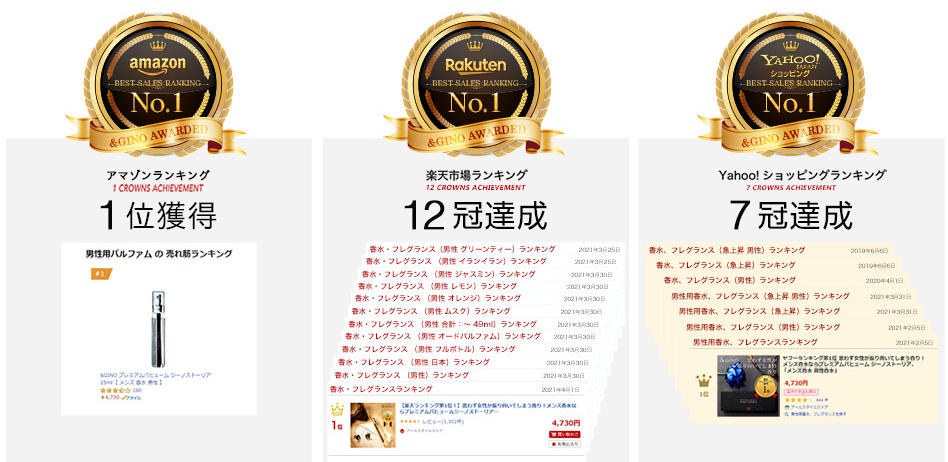 ガレイドプレミアムは公式サイトだけでなく様々な通販サイトでも販売されています。楽天市場では香水・フレグランスカテゴリで販売実績1位を獲得しています。